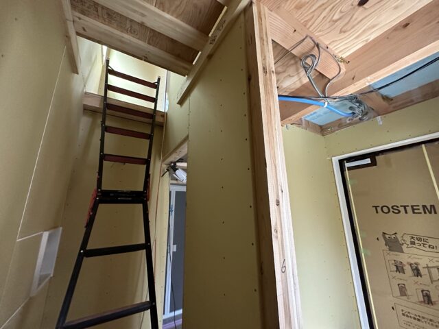 皆様こんにちは。今日は埼玉県草加市のフルリフォーム工事の現場に来ています。こちらの敷地は再建築不可となるため、既存の構造を活用した新築そっくりのフルリフォームの計画になります。現場では照明器具や空調機…