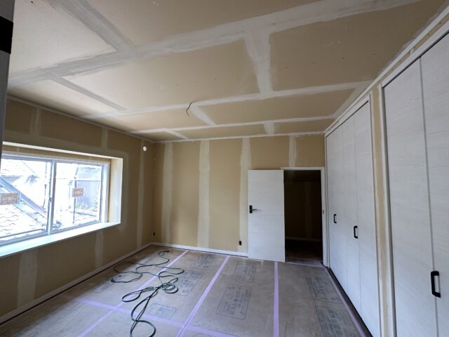 皆様こんにちは。今日は千葉県市川市で着工中の注文住宅新築工事現場に来ています。現場では内装工事が進められていてクロス工事の下地処理が行われています。 …